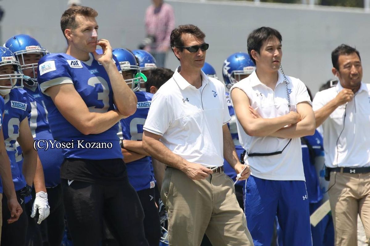 【IBM-東京ガス】IBMに今季からアシスタントヘッドコーチ格で加わった、カート・ローズ(中央)。富士通、慶応大、東京ガスで計20年のコーチキャリアを持つ智将の存在は大きい=2017年5月20日、撮影:小座野 容斉 (Yosei Kozano)