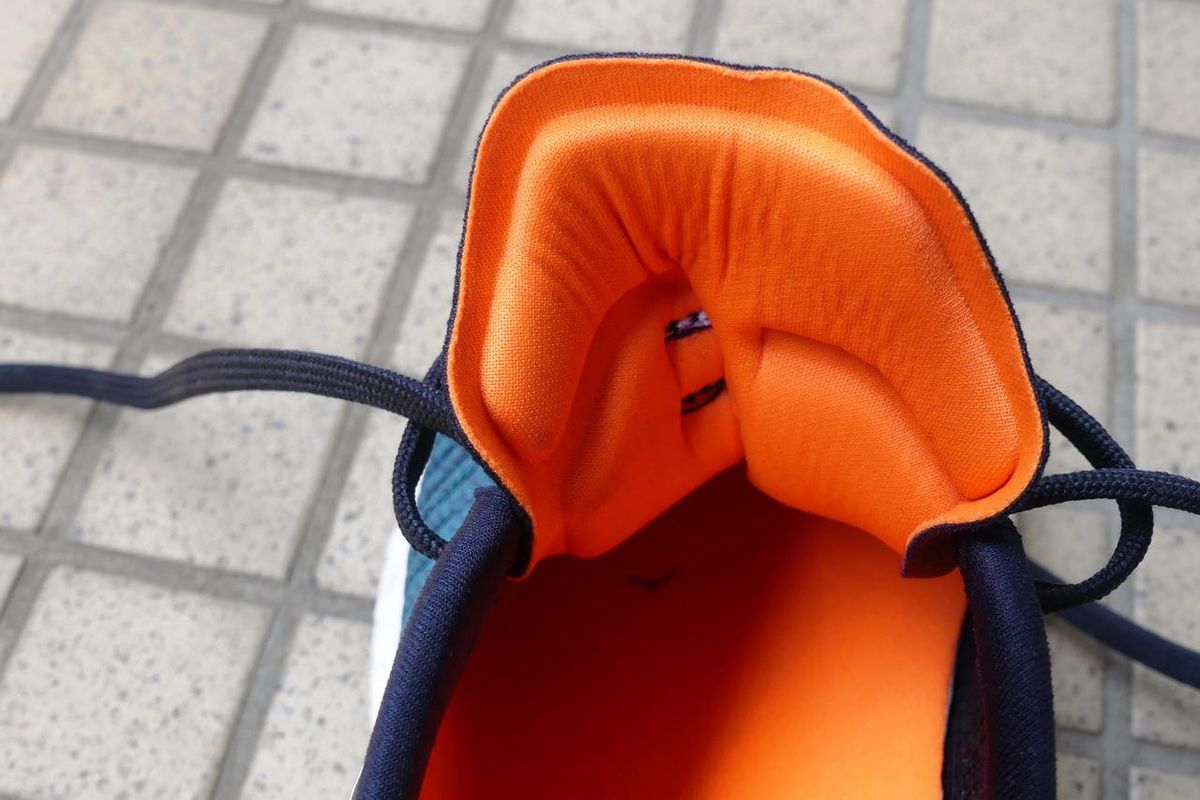 次に感じるのが前足部のホールド。横に細かい線が入ったエンジニアードメッシュは、足の縦の動きに柔軟に対応する。しかし、横には伸びない設計になっているので、走行中のブレが起きないことは容易に想像できる。