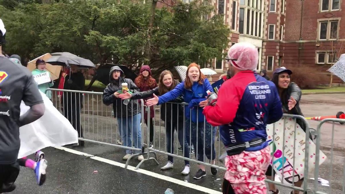 www.youtube.comボストンマラソン名物のウエズリーカレッジの応援。ヒラリー・クリントン元国務長官の母校で、超名門女子大。悪天候にも関わらず、「KISS ME!」のボードを掲げて声援を送ってくれる。飛び込んでいく男性ランナーもいる。