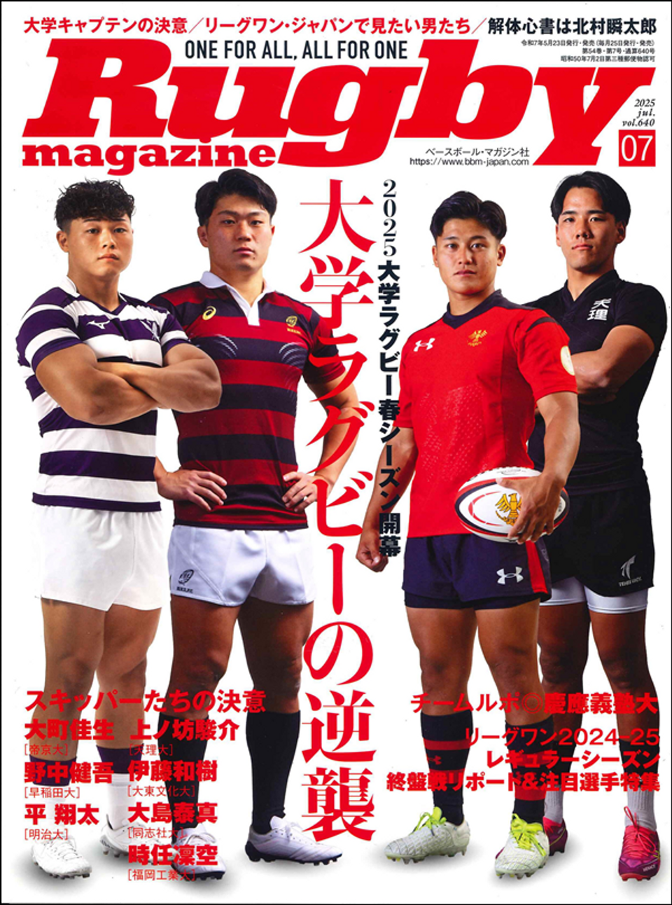 定価 1,100円(税込)Contents特集◆2025大学ラグビー春シーズン開幕大学ラグビーの逆襲スキッパーたちの決意大町佳生 [帝京大/SO・CTB]