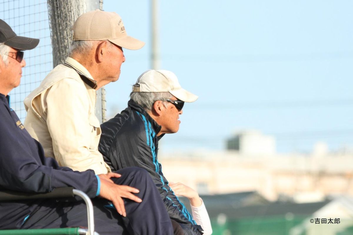 上のメイン写真=コーチとして長年、選手たちの指導にあたってきた片瀬晴城氏が熱心に選手たちに話し掛ける。2018年から監督としてチームを率いている ©吉田太郎
