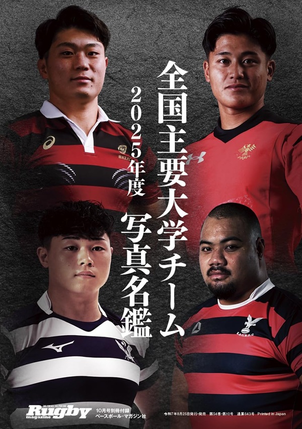 ContentsTIME TO PROVE.日本代表 巻頭特別インタビュー原田衛 [HO]◎2年目の実感。海外挑戦への思い竹内柊平 [PR]◎まっすぐに、進み続ける日本代表府中合宿リポート女子日本代表 W杯へ挑む大会直前リポート女子日本代表W杯メンバー写真名鑑2025大学開幕直前特集WE'RE READY!本橋尭也 [帝京大/SO]