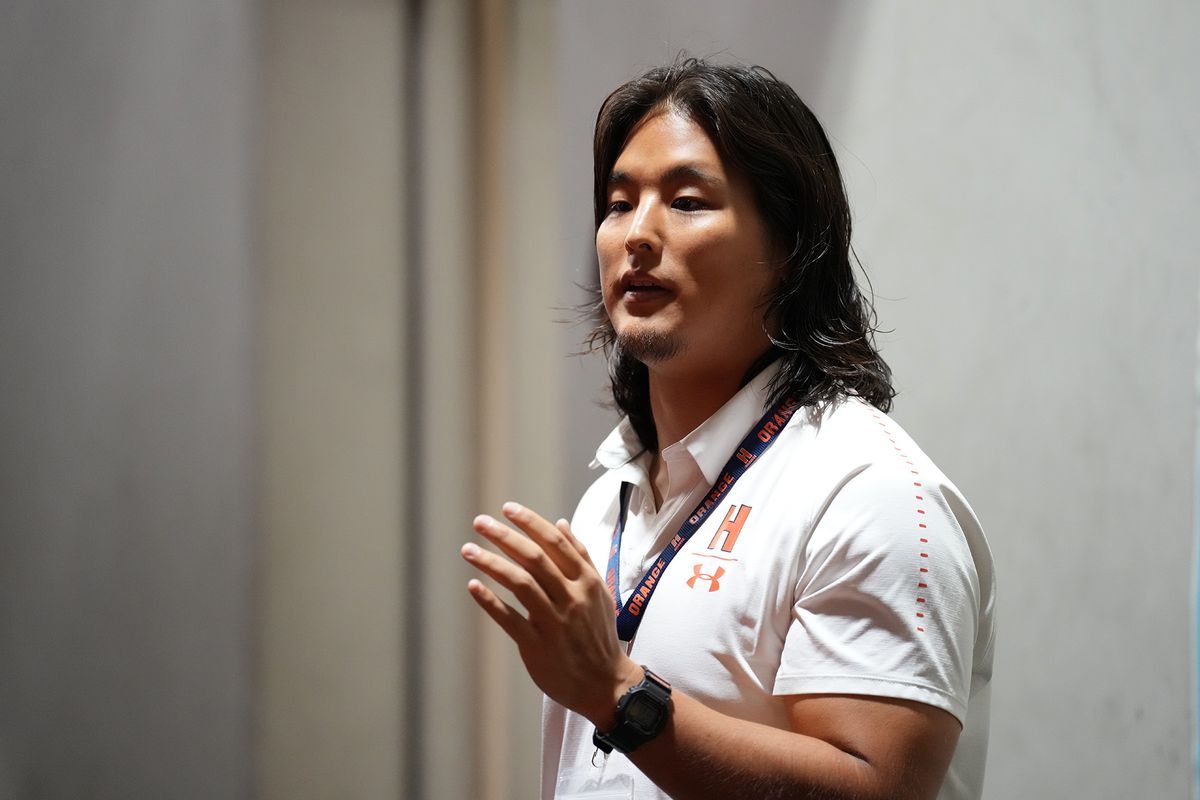 コーチング体制については、オフェンスはコーチ陣全員で作っています。外からは私がコールしているように見えるかもしれませんが、役割を分担しながら全員で組み立てています。肩書はオフェンスコーチで問題ありませんし、肩書そのものに強いこだわりはありません。法政に関わるようになった経緯は、Xリーグでの縁があり、平日にコミットできる体制が整ったためです。現在は平日二日チームに入り、その他の時間で準備を進めています。まずは今日をしっかり振り返り、次戦に向けて準備を進めます。