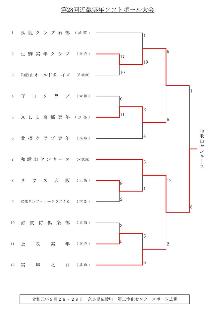 9月28日(土)、29日(日)、奈良県広陵町・第二浄化センタースポーツ広場にて『第28回近畿実年大会』が開催され、和歌山ヤンキースが生駒実年クラブを8対1で破り優勝した。そのほかの結果は、下記のとおり。