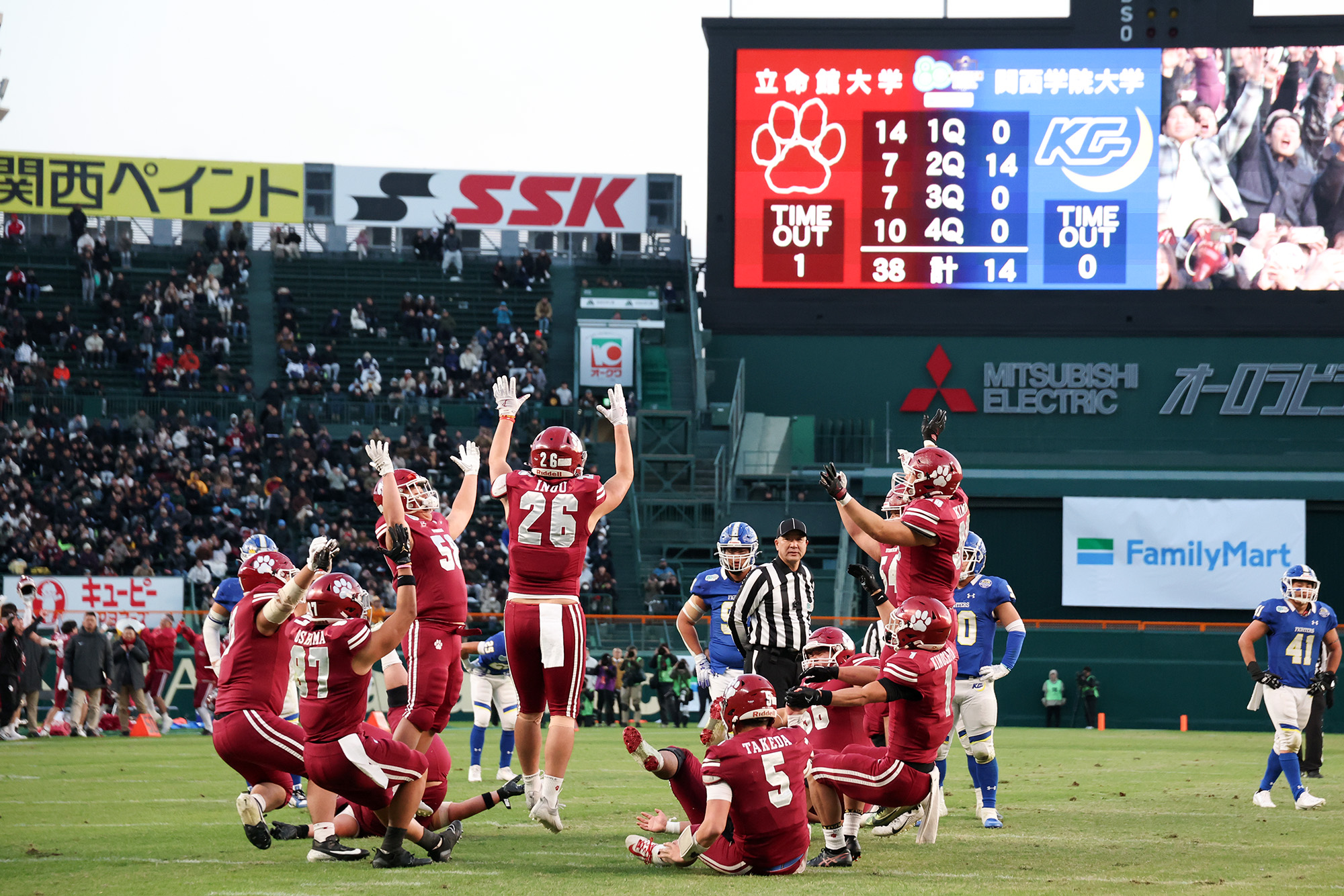 関学は終盤に星野秀太からのパスで前進を試みたが、立命ディフェンスがインターセプトでボールを奪い、時間を潰して試合を締めくくった。