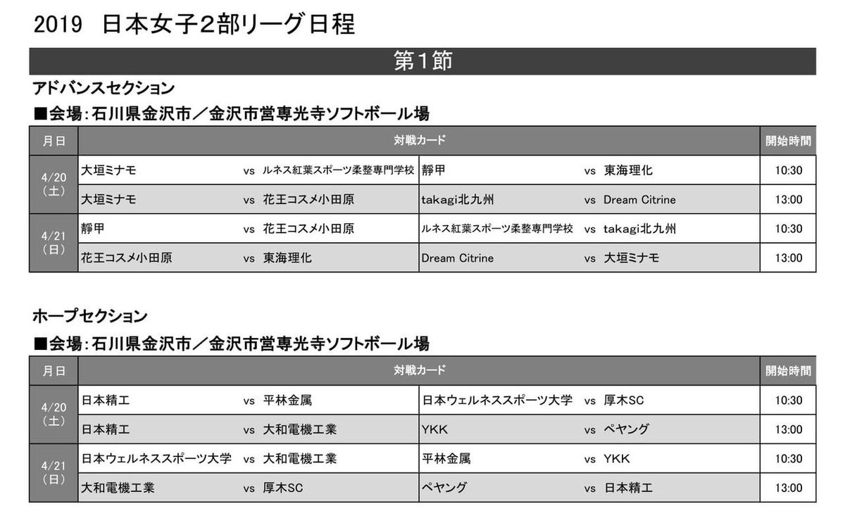 4月20日(土)、21日に日本女子ソフトボールリーグ2部第1節が、石川県金沢市・金沢市営専光寺ソフトボール場にて開催されます。お近くの方は、ぜひ観戦に行かれてみては。