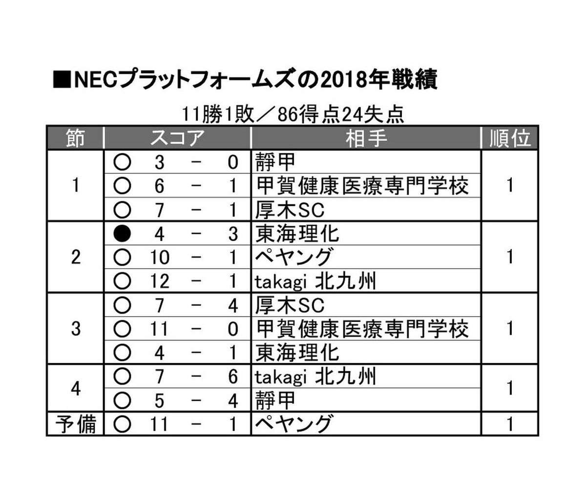 ※昨季、女子2部で優勝したNECプラットフォームズ Red Falcons