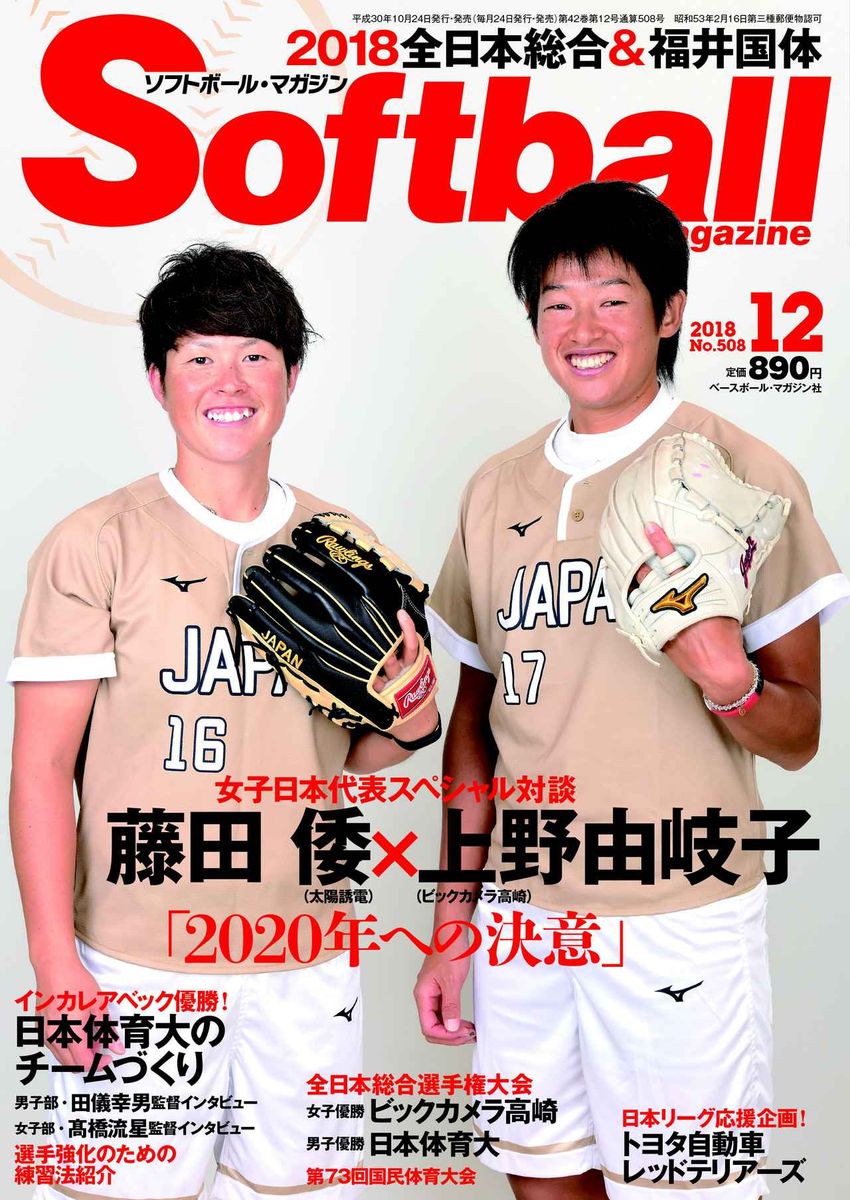 12月号の表紙および巻頭カラーは、上野由岐子投手(ビックカメラ高崎)と藤田倭投手(太陽誘電)にご登場いただきました。今夏の世界選手権で日本の二枚看板として躍動した二人に、「これまで」と「これから」について語り合っていただきました。本誌初となる二人の対談、ぜひご一読ください!
