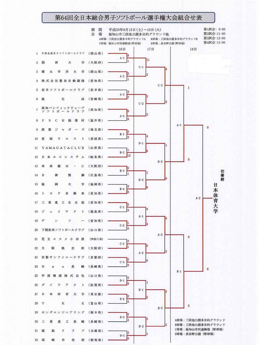9月15日(土)から18日(火)まで、女子は茨城県常陸太田市、男子は京都府福知山市を舞台に実業団、クラブ、大学の日本一を決める『全日本総合ソフトボール選手権』が開催された。