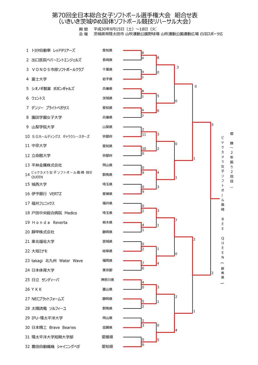 試合は2回にビックカメラ高崎が2点を先制。6回に上野由岐子がサム・フィッシャーに同点弾を浴びて追い付かれるも、その裏すぐさま打線が3点を取り返して、そのままビックカメラ高崎が5-2で逃げ切った。ビックカメラ高崎としては2年ぶり2度目の優勝となる(前身のルネサスエレクトロニクス高崎では15度優勝)。