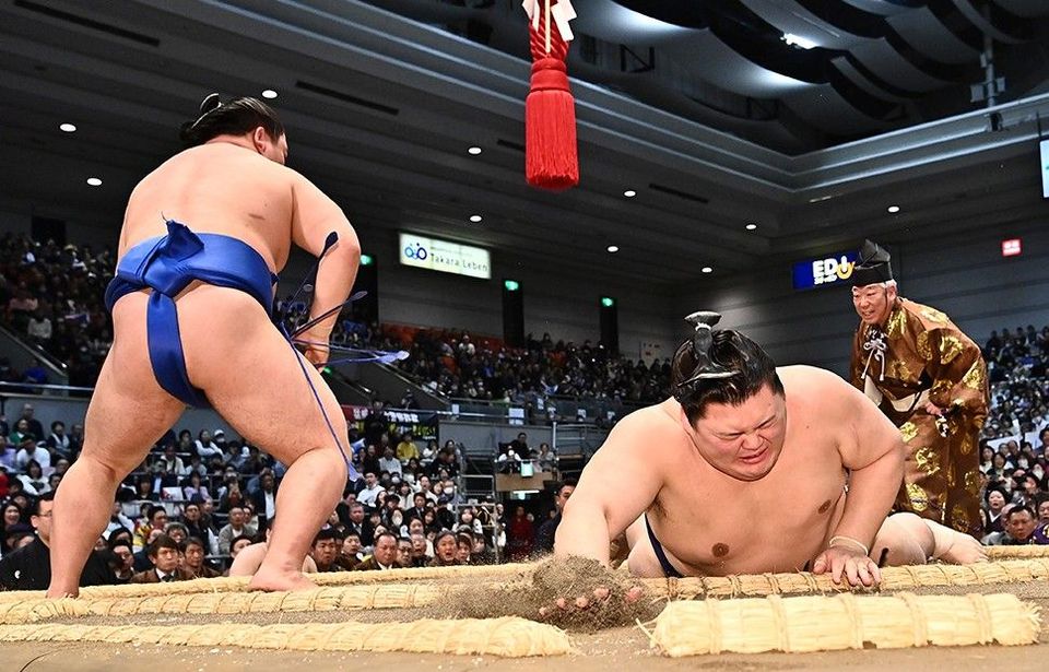 横綱でありながら、白星が遠い……。大の里が初対戦の藤ノ川に引き落とされ、初日から3連敗を喫した。