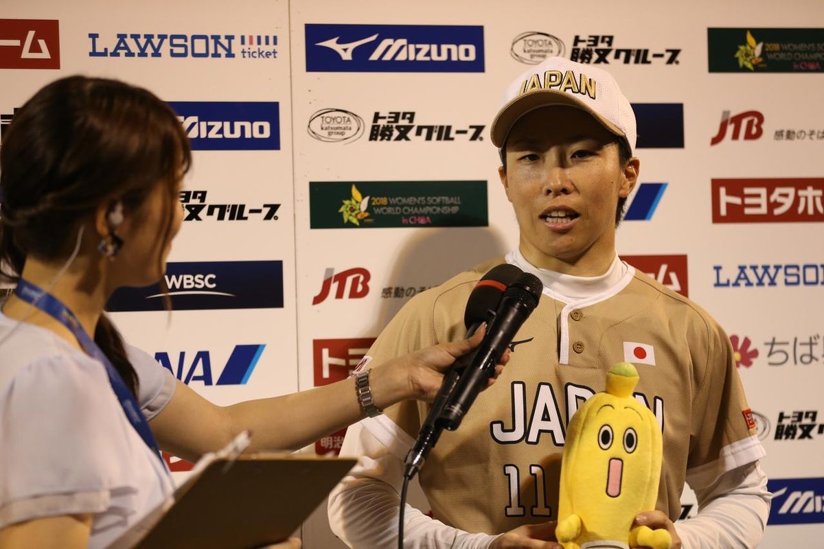 日本は初回表、絶対的エース・上野由岐子が相手打線を3人で抑えると、その裏、一番打者の山田恵里が先発のグレタ・チェケッティの初球をとらえて左翼へ。主将の一発で先制に成功した。