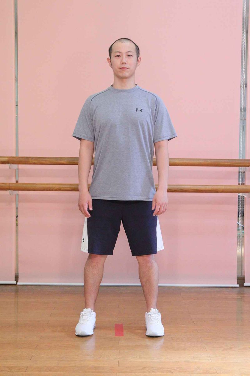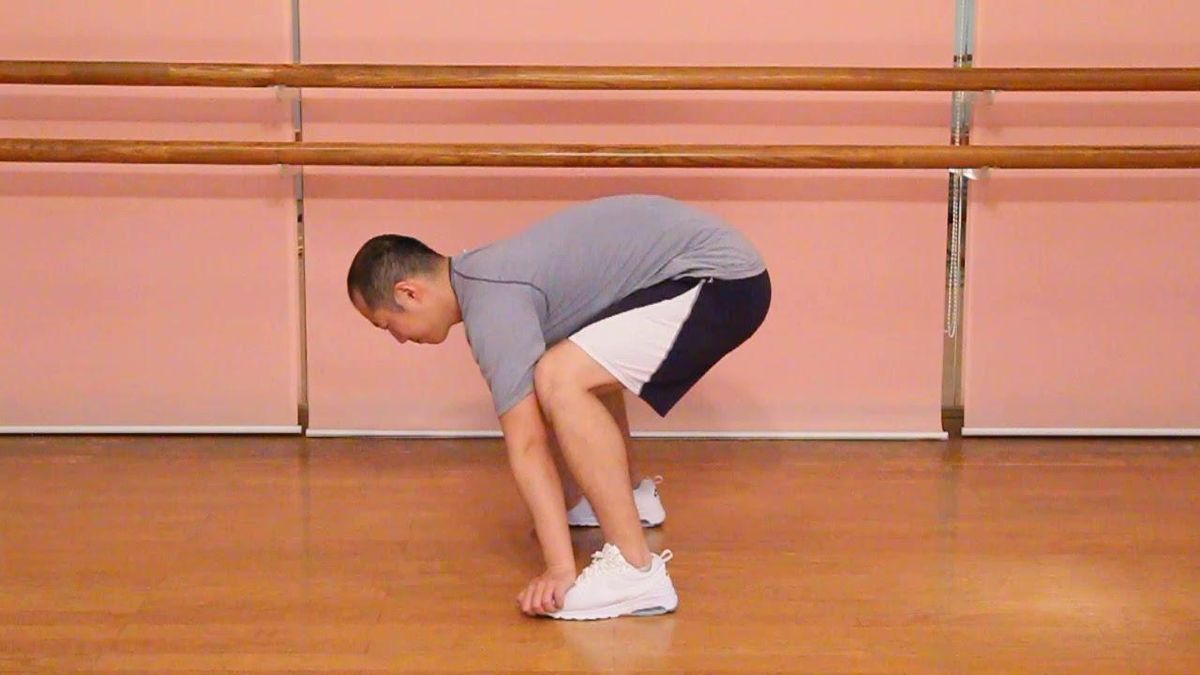 youtu.be手をつま先の上に乗せ、しゃがんだ体勢から徐々にヒザを伸ばして立ち上がります。できる人は手をつま先につけたままヒザを最後まで伸ばしましょう。