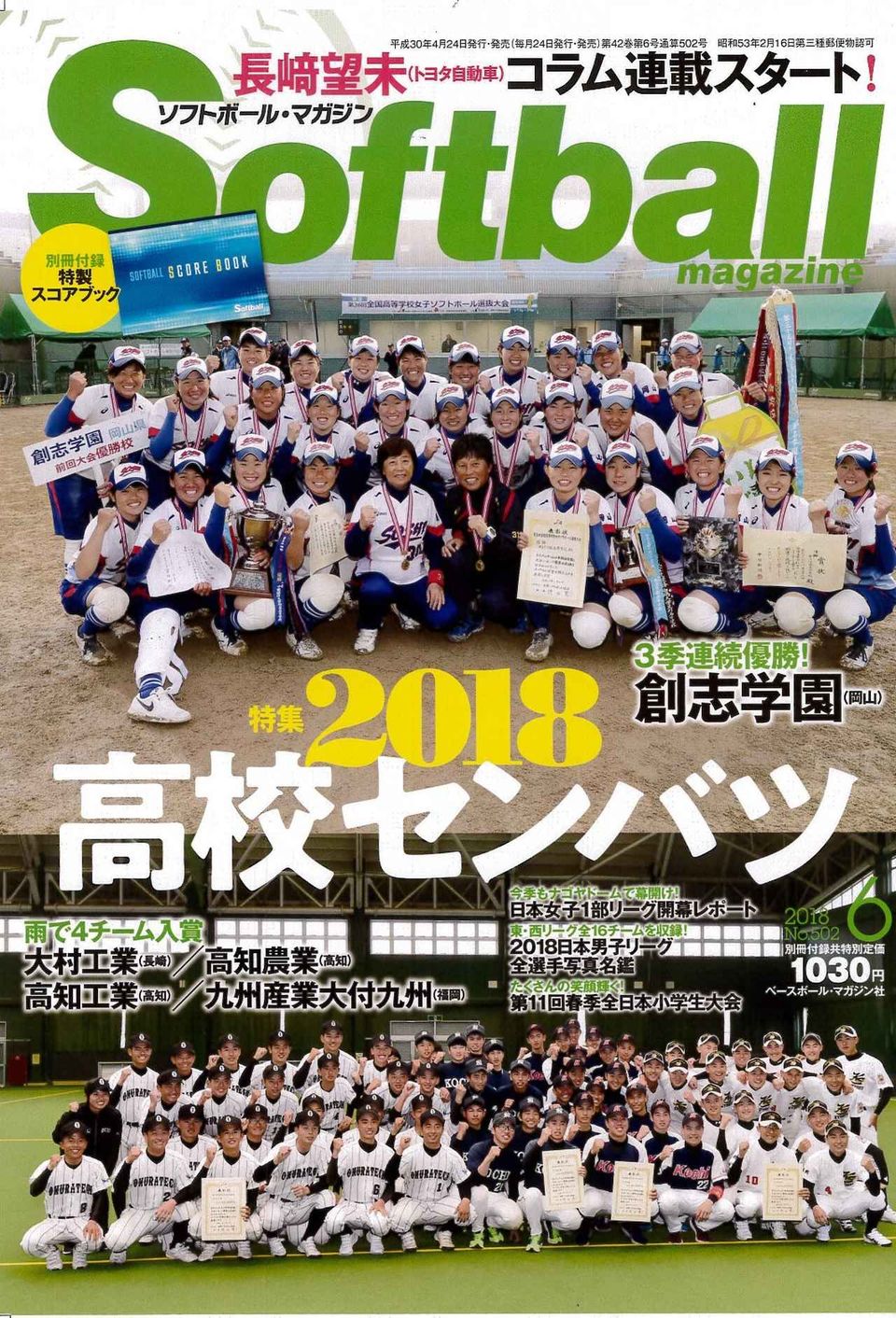 6月号の特集は『2018高校センバツ』。高校生たちの春の祭典を大きく取り上げました。女子は熱戦の決勝の模様を、雨天で準々決勝までで中止となった男子は、入賞した4校について、巻頭カラーでお伝えします。大会全体では、1、2回戦は記録と写真で、3回戦以降は写真と試合レポートで振り返ります。大会で輝きを放ったヒーロー、ヒロイン特集にも注目です!