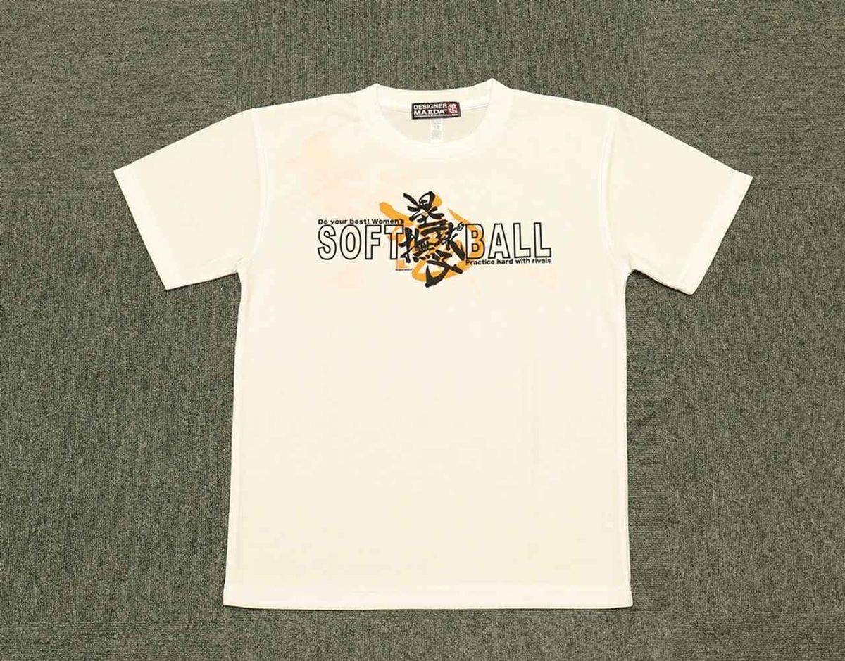 練習に最適なドライ素材を使用した吸汗速乾タイプのTシャツ。バックに「絆」と入った女性用デザインの「塁球撫子」。写真は表面