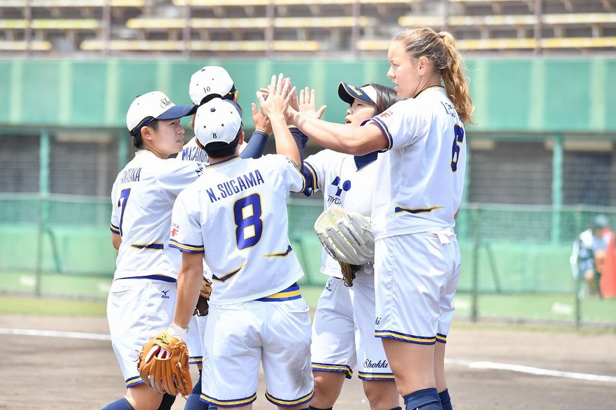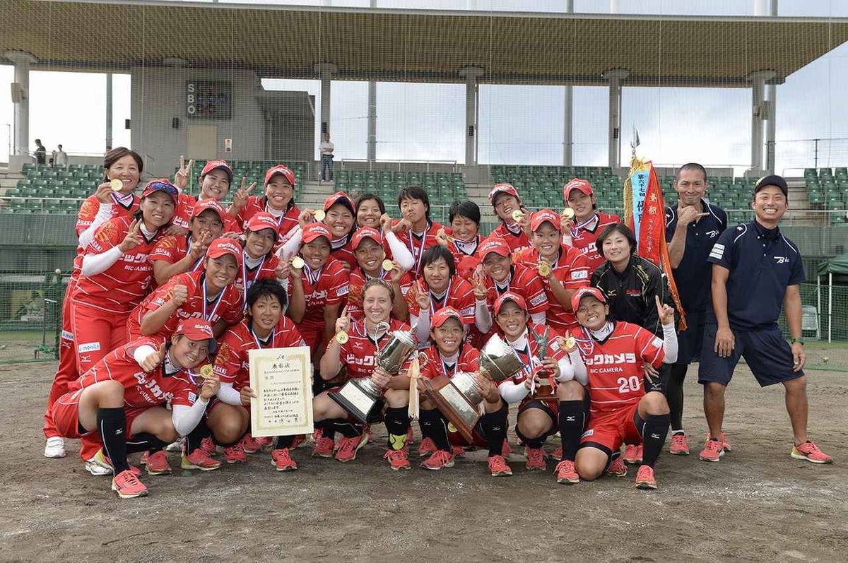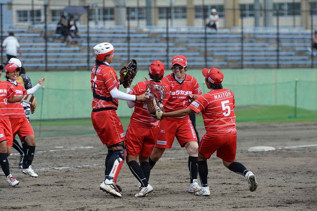 その裏、豊田自動織機はタイブレーカーの走者を犠打で進めますが、あと一本が出ず。ビックカメラ高崎がチーム移管後で初の優勝を果たしました。