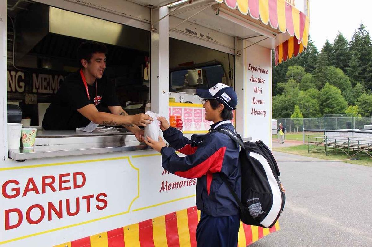 満面の笑みで「ミニドーナツ」を受け取る市村選手