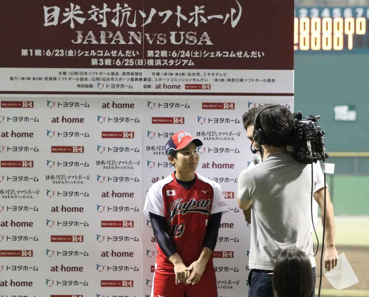 初回、三番・洲鎌夏子のバットがアメリカの先発、ディレイニー・ゴーリーのボールを捉えた。本人も快心だったというあたりは、高い放物線を描いて中堅フェンス向こうへと消えていった。うれしい先制2ランに「打った瞬間に入ったなと思いました。先制点が取れて良かったです」と洲鎌。