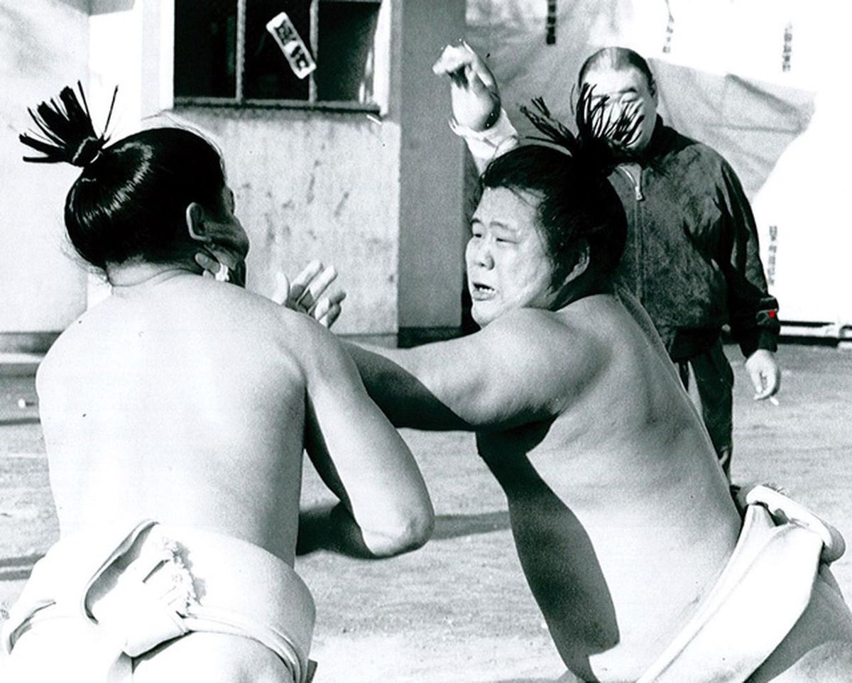 「強くなるには、体を大きくする、というのが一番の早道ですからね。もちろん、ただ食べるだけじゃなく、稽古もやりましたよ。1年後にハワイから高見山(のち関脇)が入ってきたこともあって、負けるものか、とそれこそ、毎日、真っ黒になってね。もっとも、向こうはすぐ上にいってしまいましたが。押し相撲を教えてくれたのは、自分をスカウトしてくれた高砂親方です。この小さな体で廻しを欲しがったらひとたまりもありませんもんね。とにかく入門したときから、押し一本槍。廻しを取ったら、この野郎、とよく叱られたもんです。だから、引退するまで、自分は四つ相撲の稽古はやったことがないんですよ」