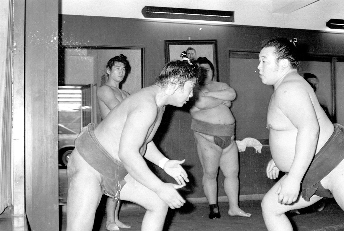 幕下時代、同期でライバルの下山(のち2代若乃花)と激しい稽古を積む隆の里