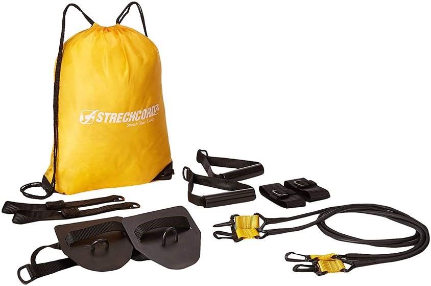 「ストレッチコード社の陸トレ総合セットですが、セットの中には、パドル・ハンドル・レッグ用と3種類のパーツが付属しています。チューブにパーツを付け替えれば、用途に応じて筋力アップのトレーニングが可能となります。