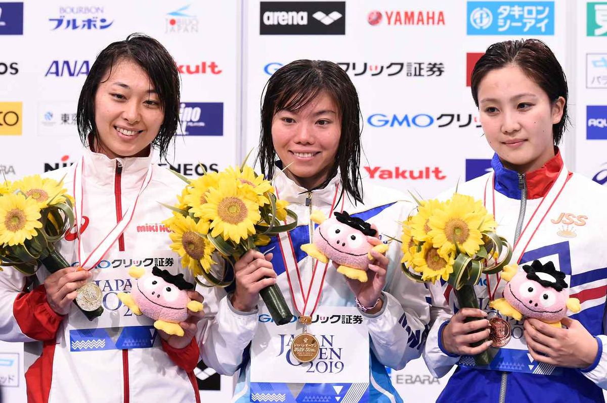 写真上/女子平泳ぎには(左から)鈴木、青木、渡部らトップ選手が集結(写真は2019年ジャパンオープン、撮影◎Getty Images)