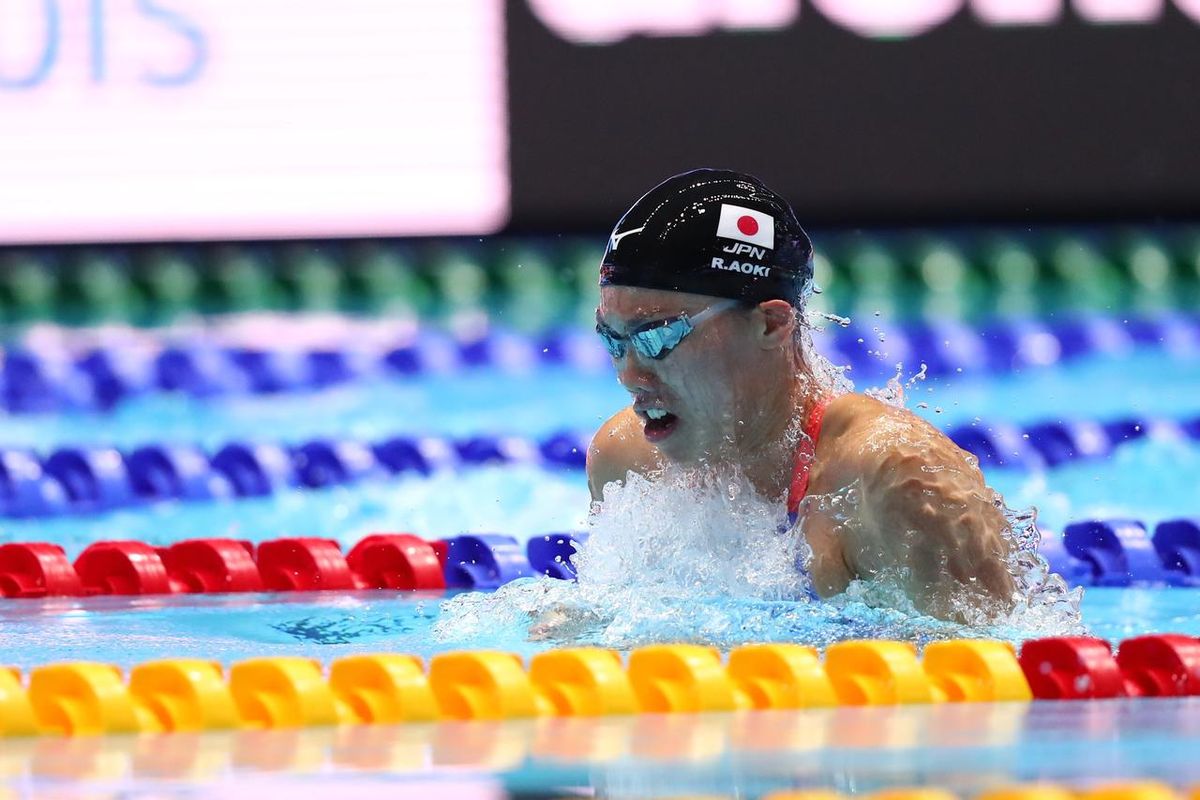 最終レースの女子100m平泳ぎには青木玲緒樹(ミズノ)が堂々3位残りで決戦に挑む。4月の日本選手権で代表権を獲得できず、5月のジャパンオープンで滑り込みの代表入りを果たした青木がこの活躍。こういった頑張りはチームに活力を与える。「50mをラクに30秒7~8くらいで入り、ラストで競ったときに焦らない」を心にとめて泳ぎ抜く覚悟だ。