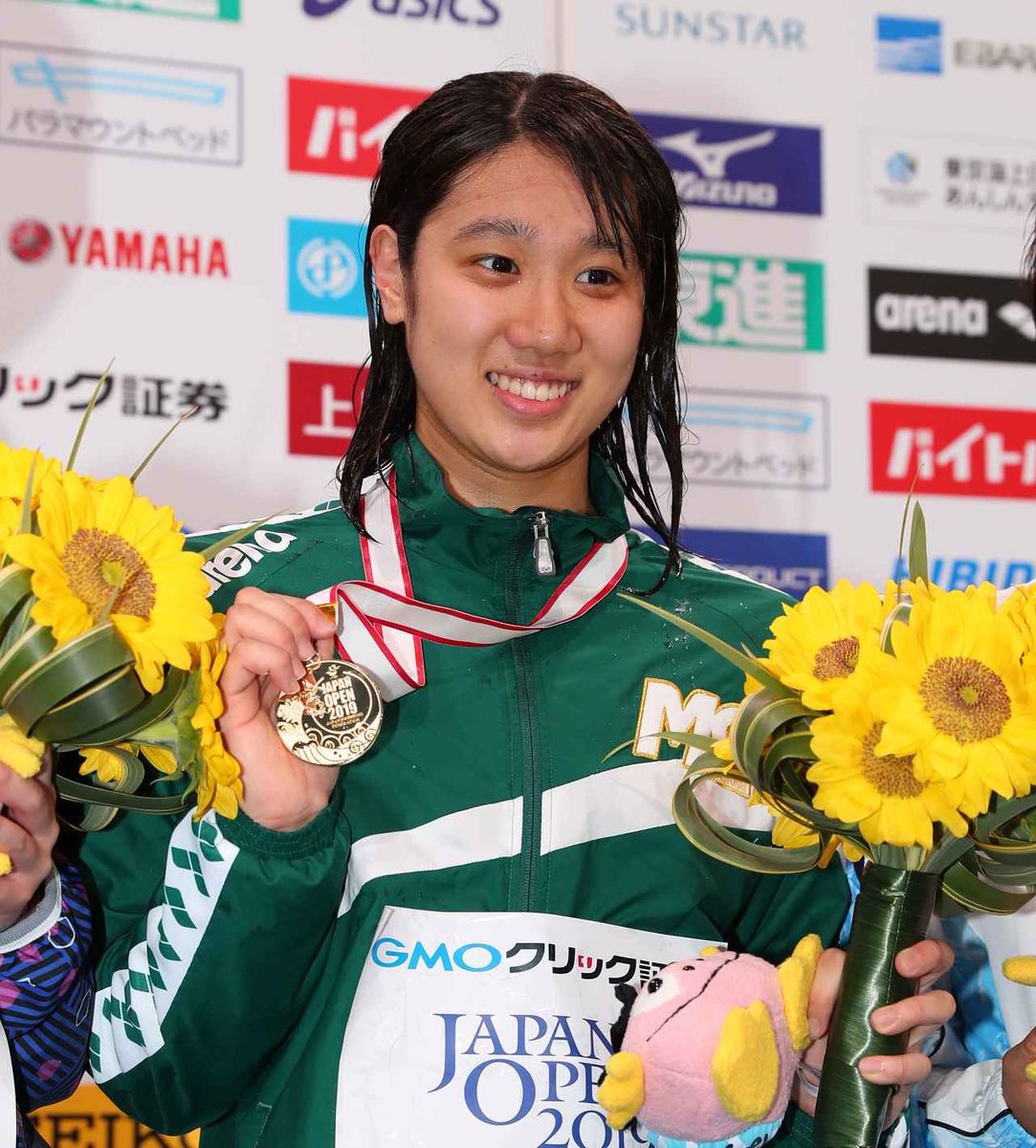 ※写真上=自己ベストに近い記録で女子400m自由形を制した難波(写真はジャパンオープン2019)