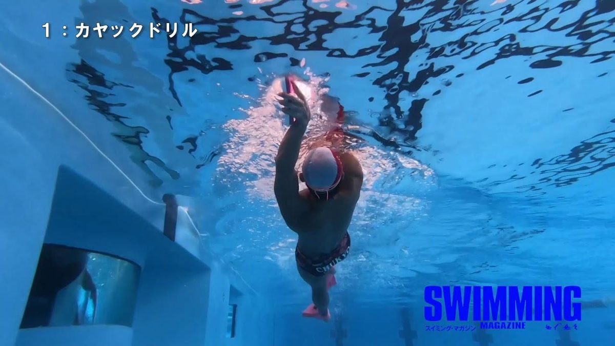 4月11日に発売された「スイミング・マガジン」5月号掲載の中京大の「ドリルマニュアル」第4回目。メニューは、藤谷光順コーチによる背泳ぎのドリルで、実演モデルは、日本学生選手権100m背泳ぎ連覇中の宇野柊平選手です。