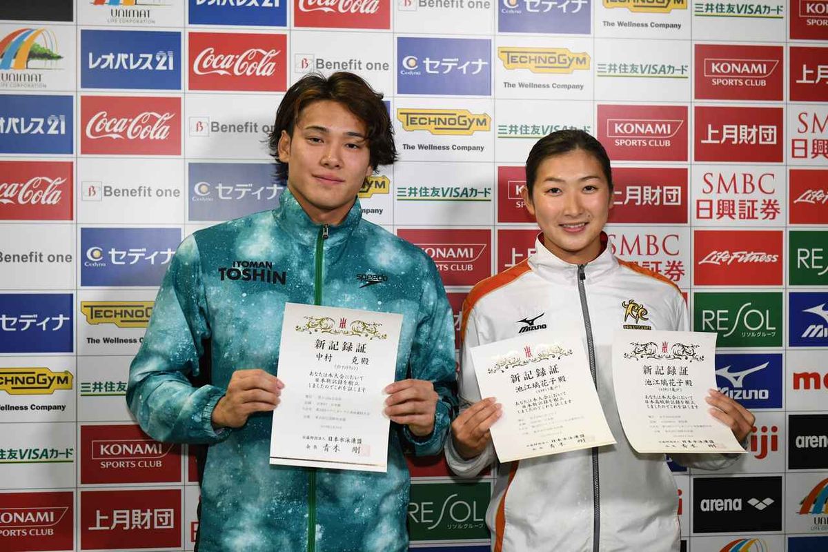 ※写真上=昨年度は中村克(イトマン東進/左s)が男子100m自由形で、池江璃花子(ルネサンス/高3)が女子200m自由形、50mバタフライで日本新記録をマークした