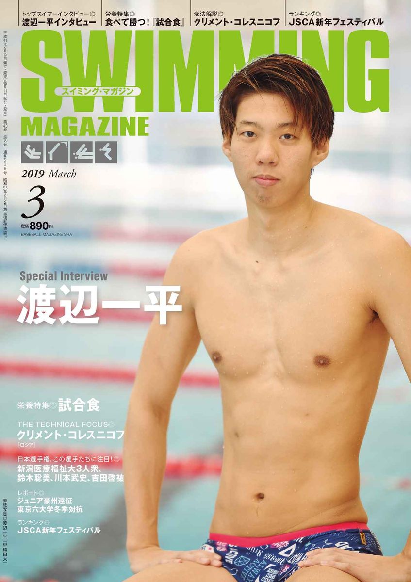 巻頭特集は、男子平泳ぎの渡辺一平選手(早稲田大)。2年前の1月に樹立した200mの世界記録を更新すべく、2019年シーズンに懸ける意気込みをとっぷりと語っていただきました。