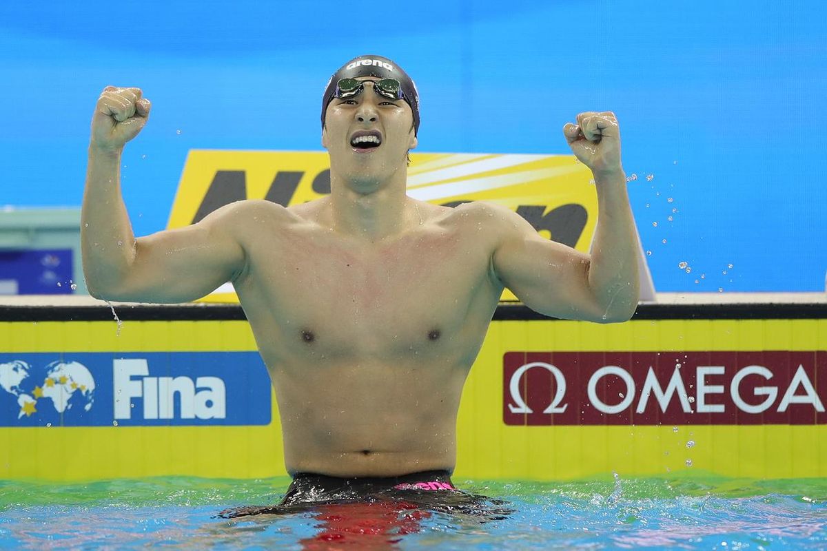 前半は焦らず、でも積極的にいきました。最後はバテて、なまりのような泳ぎ方になっていましたが、最後まで全力で泳ぎきろうと思って泳ぎました。タッチしてから電光掲示板を見たら世界記録と出ていて、(2位のチャド・ルクロ/南アフリカと)どっちだろうと思ったら自分だったので、その瞬間はすごくうれしかったですね。