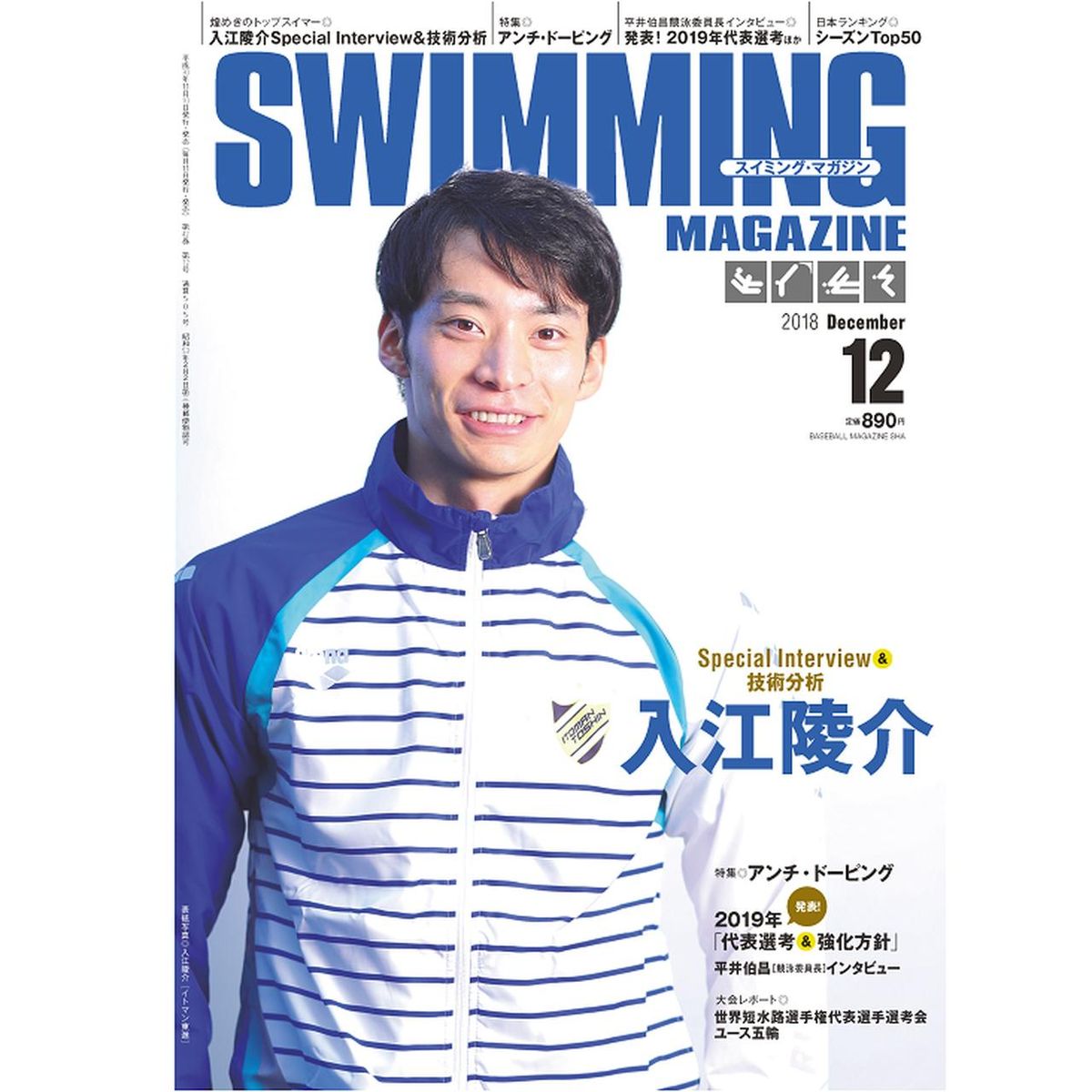 大会レポートは12 月の世界短水路選手権の代表選手選考会、特別企画では日本代表選手の声から基本知識までをわかりやすく解説する「アンチ・ドーピングA to Z」、来年度の日本代表選考&強化方針を含めた平井伯昌・競泳委員長インタビューをお届けします。