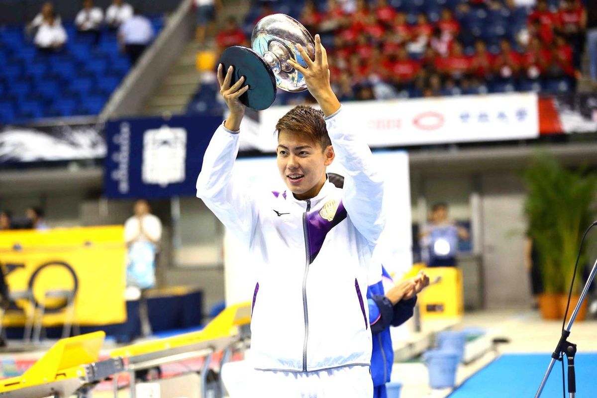 明治大はこの夏、日本代表でブレークした松元克央(4年)が100、200m自由形で2冠、フリーリレー2種目の優勝に貢献する働きを見せたのを筆頭に、2位の中京大の追撃を振り払い4連覇を達成。