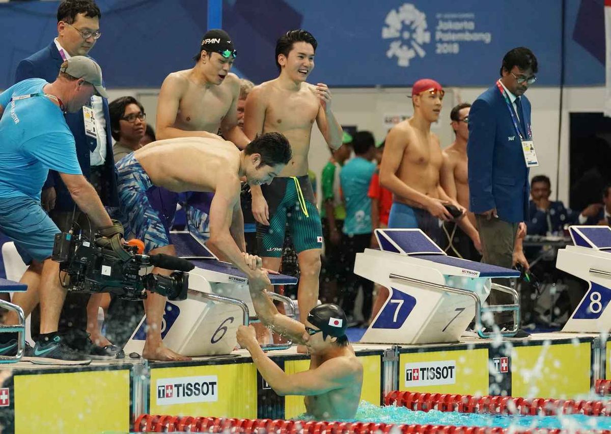 「孫楊は前半速い選手なので、食らいついていこうと思った。(途中ベトナムのグエン・フイ・ホアンにも先行され)ちょっとびっくりしたけど、ラストは自信があったので、そこは落ち着いて、しっかり上げられたと思います。この種目で自己ベスト(7分53秒01)を出せたので、(最終日の)メイン種目の1500m(自由形)での日本記録更新に、しっかりつなげていきたいと思います」