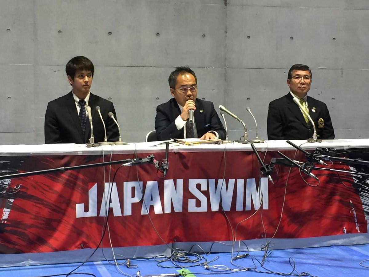 4月の日本選手権50m背泳ぎ王者の古賀淳也が世界アンチドーピング機構(WADA)の検査により、WADAが禁止物質に指定しているLGD-4033及びSARMS-22が検出され、5月15日に国際水泳連盟(FINA)から暫定的資格停止処分を受けたことが判明。それに対してFINAのアンチドーピング規定に基づき、古賀が公聴会(ヒアリング)を行なう申し立てを行なったことを受け、5月23日、本人とその代理人の高松政裕氏、日本水泳連盟専務理事の坂元要氏が記者会見を行なった。