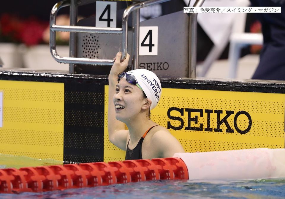 大会で最も光輝いたのは、個人メドレーで2冠に輝いた大橋悠依(東洋大/上写真)。特に400mでたたき出した4分31秒42という日本新記録は衝撃的だった。2月に出した自己ベストを3秒93更新、ライバルで大橋に次ぐ2位となった清水咲子(ミキハウス)が持っていた日本記録を3秒24上回り、前年のリオ五輪同種目でも3位に相当するレベルのものだった。ちなみに最も得意とする背泳ぎでも、200mで3位に入り表彰台に上っている。夏のブダペスト世界選手権では200m個人メドレーで2分7秒91の日本新で、銀メダルを獲得し、文字通り、個人メドレーの女王としての地位を築く足掛かりとなる泳ぎだった。