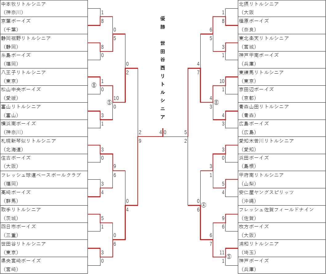 優勝は、世田谷西リトルシニア(東京、10年ぶり2回目)。