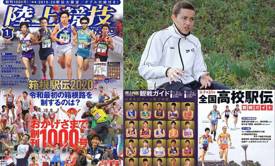 いつもより1日早く12月13日(金)発売の陸上競技マガジン1月号は、おかげさまで創刊1000号。世界に名を刻んだ偉大なアスリートおよび100号単位で振り返る陸マガ表紙を特集。巻頭では箱根駅伝2020を完全プレビュー。東海大学に死角はないのか!? 連覇阻止を狙う有力チームは? 出場全21チーム予想オーダー、筑波大学リポート、全日本後に台頭した選手たちの情報も。福岡国際マラソン、クイーンズ駅伝、サニブラウンがプロになる理由、クレイ・アーロン竜波インタビュー、ダイヤモンドアスリート認定式&修了式、マイケル・ノーマンインタビュー、ニューイヤー駅伝展望などなど盛りだくさんの内容でお届けします。2大付録は「箱根駅伝観戦ガイド」と「全国高校駅伝観戦ガイド」。出場全チームの名鑑、箱根駅伝ガイドにはスペシャルポスターもついています!