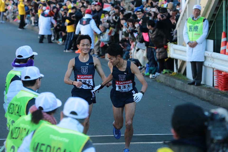 ※写真上=前回は1区・西山(左)が区間賞、2区・相澤も区間3位と申し分のない滑り出しで往路優勝への流れを作った(写真/荒川祐史・陸上競技マガジン)