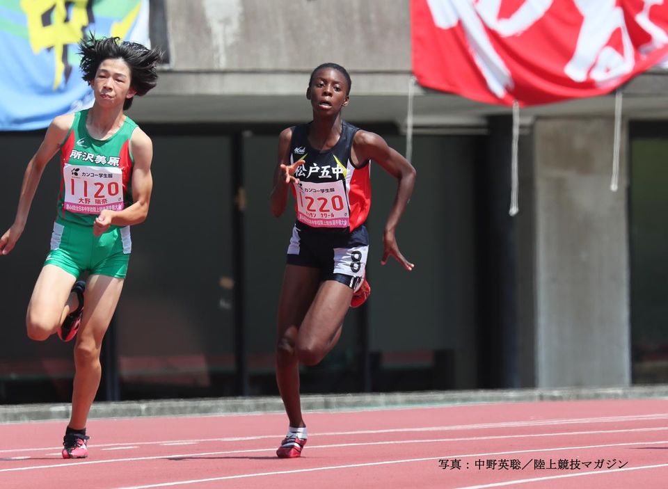 翌日の決勝では、滝田静海(足立十三中3年・東京)、前回入賞の尾﨑星(鳥取西中3年)、吉田明香里(河原中3年)の鳥取勢を制し、25秒18(-2.3)で1年生優勝を飾った。44回を数える大会で、この種目における1年生優勝は初(2年生優勝も4人のみ)。さらに最終日の100m決勝では、12秒29(-0.5)で2位入賞を果たし、大会前の千葉県通信大会で記録した中1歴代2位となる12秒16(+1.0)に迫った。
