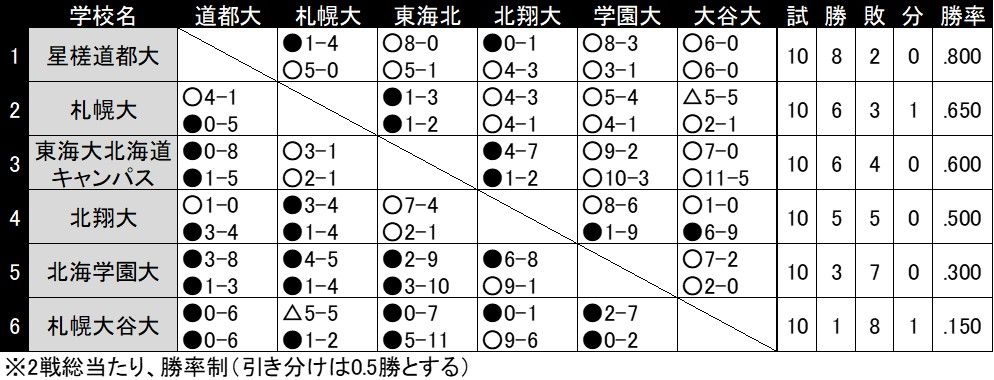 優勝は、星槎道都大(8季ぶり5回目)。