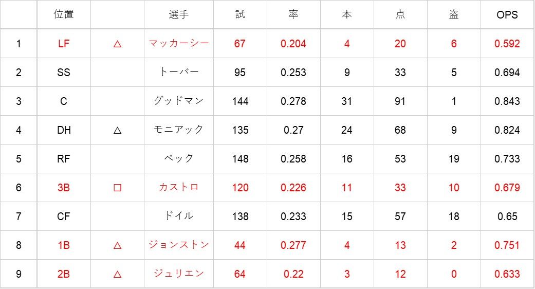 ナ・リーグ最多となる11度のワールドシリーズ制覇を誇る名門が今季から本格的なチーム再建に突入する。昨季は直近3年間で2度目のレギュラーシーズン負け越し。シーズン終了後、編成トップのモゼラックが退任してブルームが編成本部長に就任し、グレイ、コントレラス、アレナド、ドノバンと主力を次々に放出した。よって、今後数年間は勝ち負けを度外視し、育成に注力する期間となる。先発にメイ、ブルペンにスタネック、野手ではウリアスを補強したが、全員1年契約のため、夏場にはトレードの駒として使われることになるだろう。楽しみなのは超有望株のウェザーホルト。開幕からレギュラーに抜擢される予定で、今季の新人王候補の1人だ。
